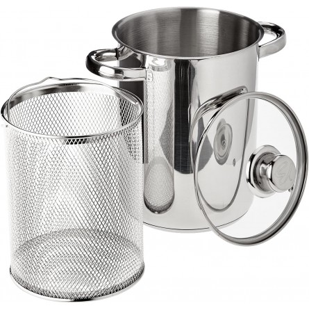 Diamètre 16 cm Acier inoxydable Triple fond diffuseur inox/alu/inox Couvercle en verre avec bord inox et trou vapeur Équipement métal Panier en fil d’acier étamé Tous feux dont induction