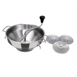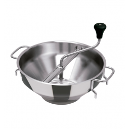 En acier inoxydable, bouton polypropylène, poli miroir 2 faces.